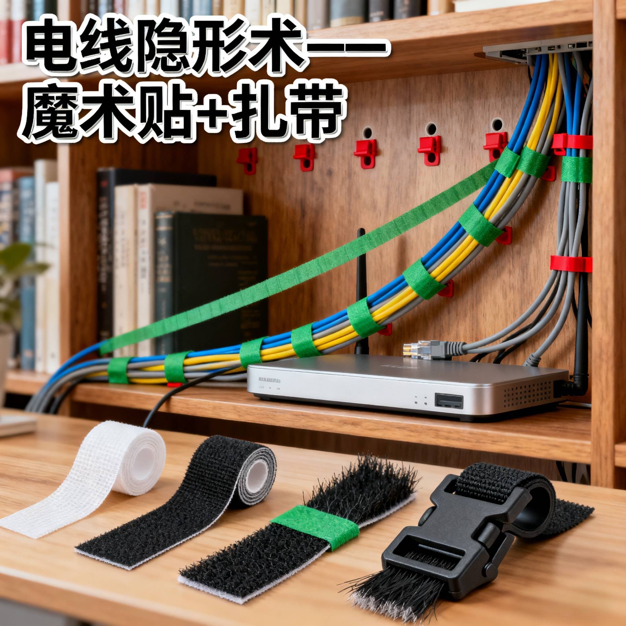 问题场景:桌面充电器线、电视线缠成“蜘蛛网”,扫地时总被缠住。具体步骤: