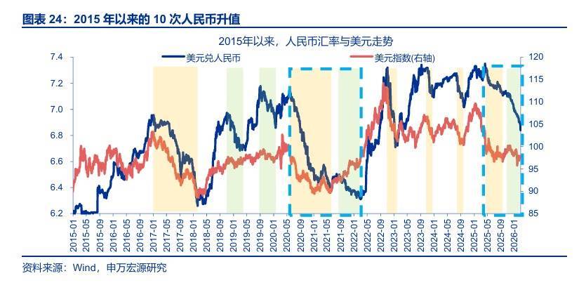 2026年1月下旬以来,人民币升值明显加速;为抑制人民币过快升值,2月27日央行宣布下调外汇风险准备金率。本轮升值与过往的异同、央行工具会否扭转趋势?