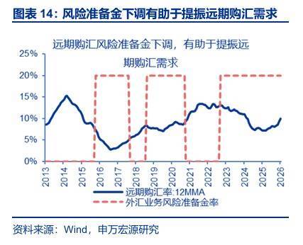 4央行通过调整远期售汇风险准备金率来干预银行成本,旨在利用“成本转嫁”机制提振企业远期购汇需求并缓解汇率单边过快升值:风险准备金率降至零,本质上剔除了对银行开展此类业务的“隐含利息”,按一年期美元贷款利率4.0%测算,理论上如果银行100%让利,企业购汇的综合成本将下降约0.8%。但该操作的有效性受限于银行让利意愿、企业购汇行为的实际变化,后者受到汇率预期等影响,直接效果或非立竿见影。