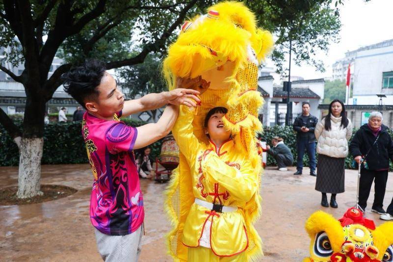 舞狮师傅指导孩子进行舞狮。受访单位供图庭院之中,醒狮昂首摆尾,鼓点在院落里响起,铿锵的锣声穿过青砖灰瓦,在春寒里激荡回响。2月28日,位于湖南长沙市岳麓区的新民学会旧址院内人头攒动,“狮舞元宵 共享团圆”节庆活动热闹开启。