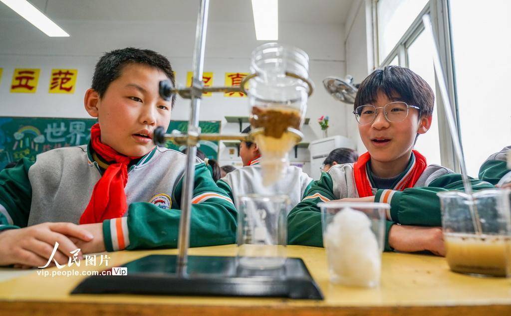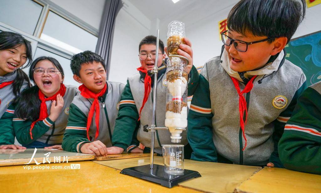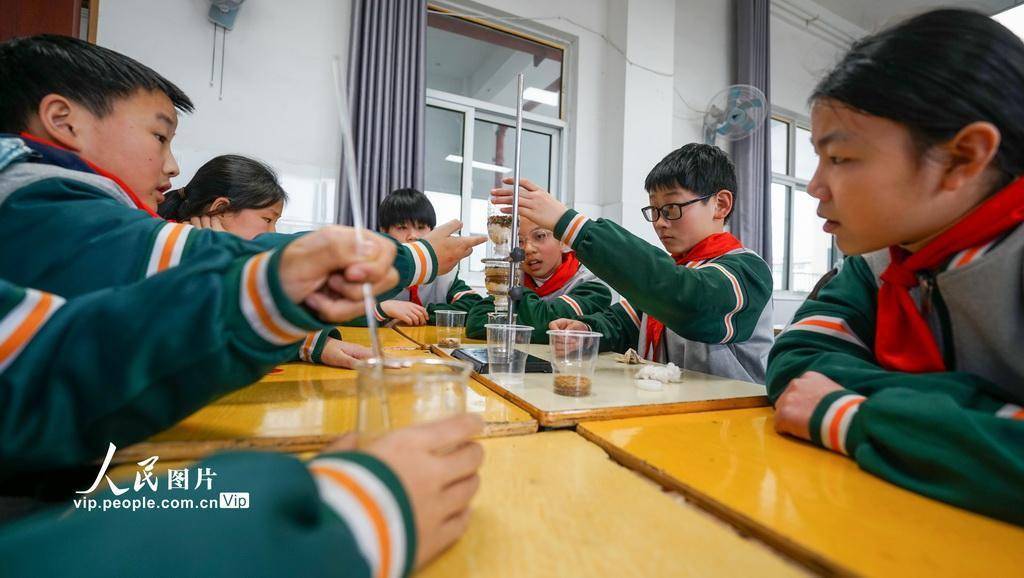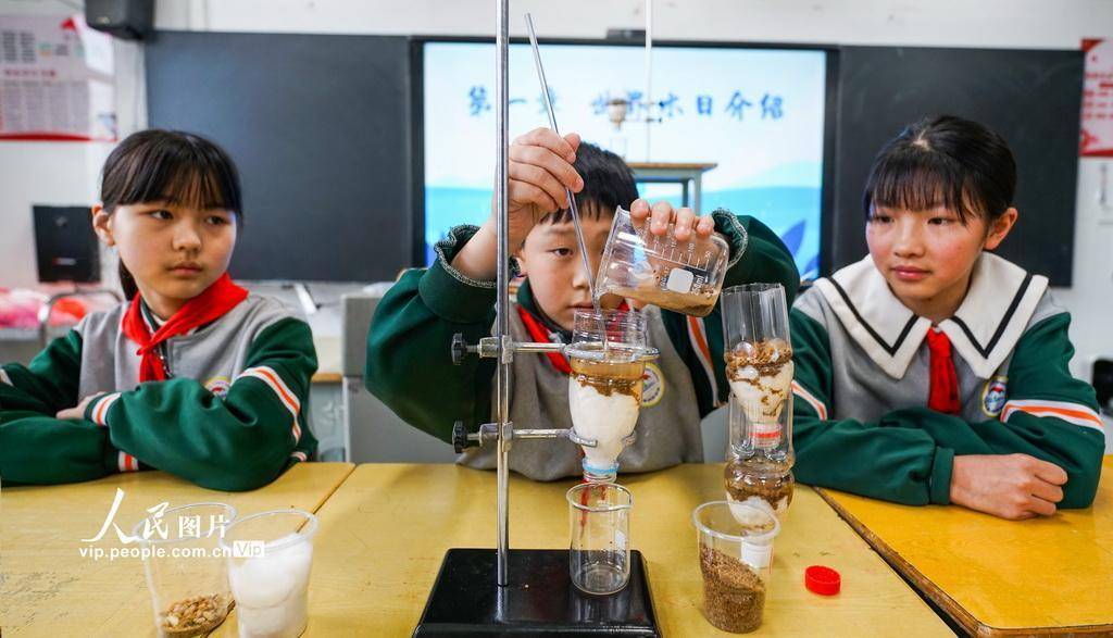 2026年3月19日配资平台查询,江苏省宿迁市泗洪县洪桥学校的学生们在老师的指导下开展 “简易净水器” 科学小实验。学生们用“简易净水器”将浑浊的水过滤成清澈的水,通过直观的实验让学生们了解水知识,增强节水护水意识,迎接“世界水日”。周鹏摄(人民图片网)